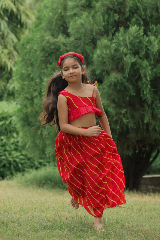 Buy this quirky yet stylish saree cum lehenga set for your kid and allow her...