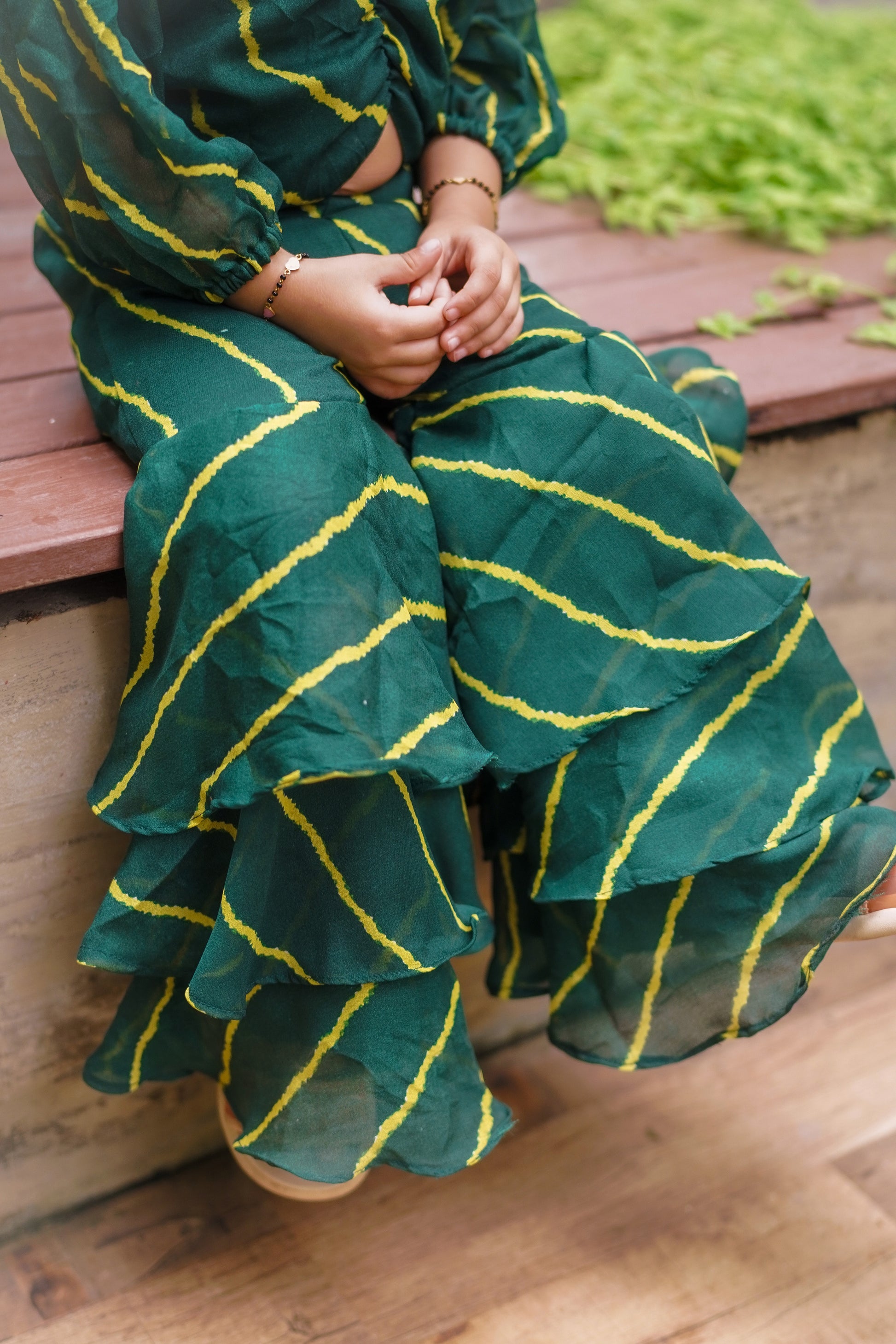 Green Leheriya Printed Top And Sharara Set