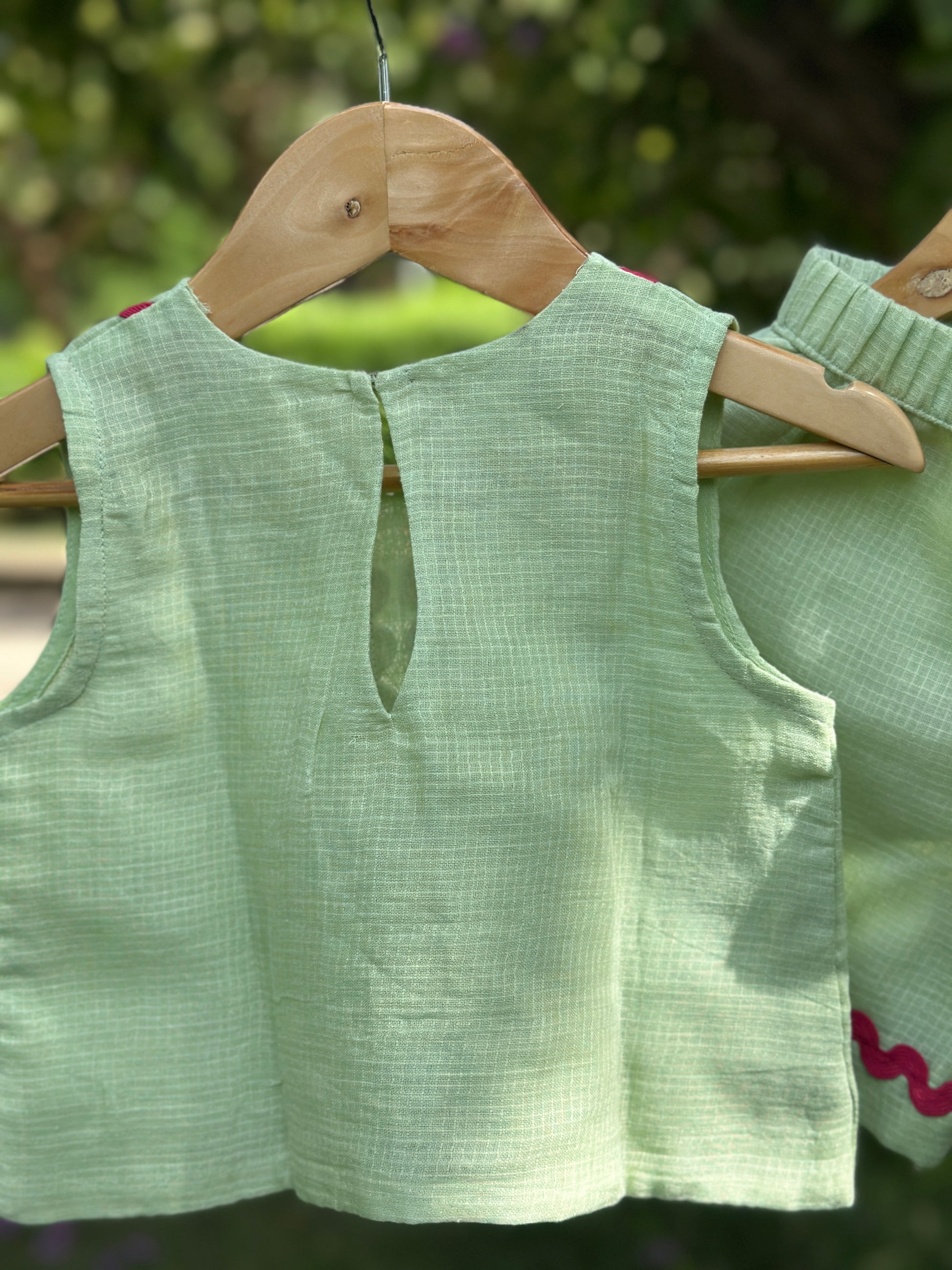 Mint green cotton doriya shorts set
