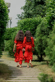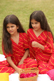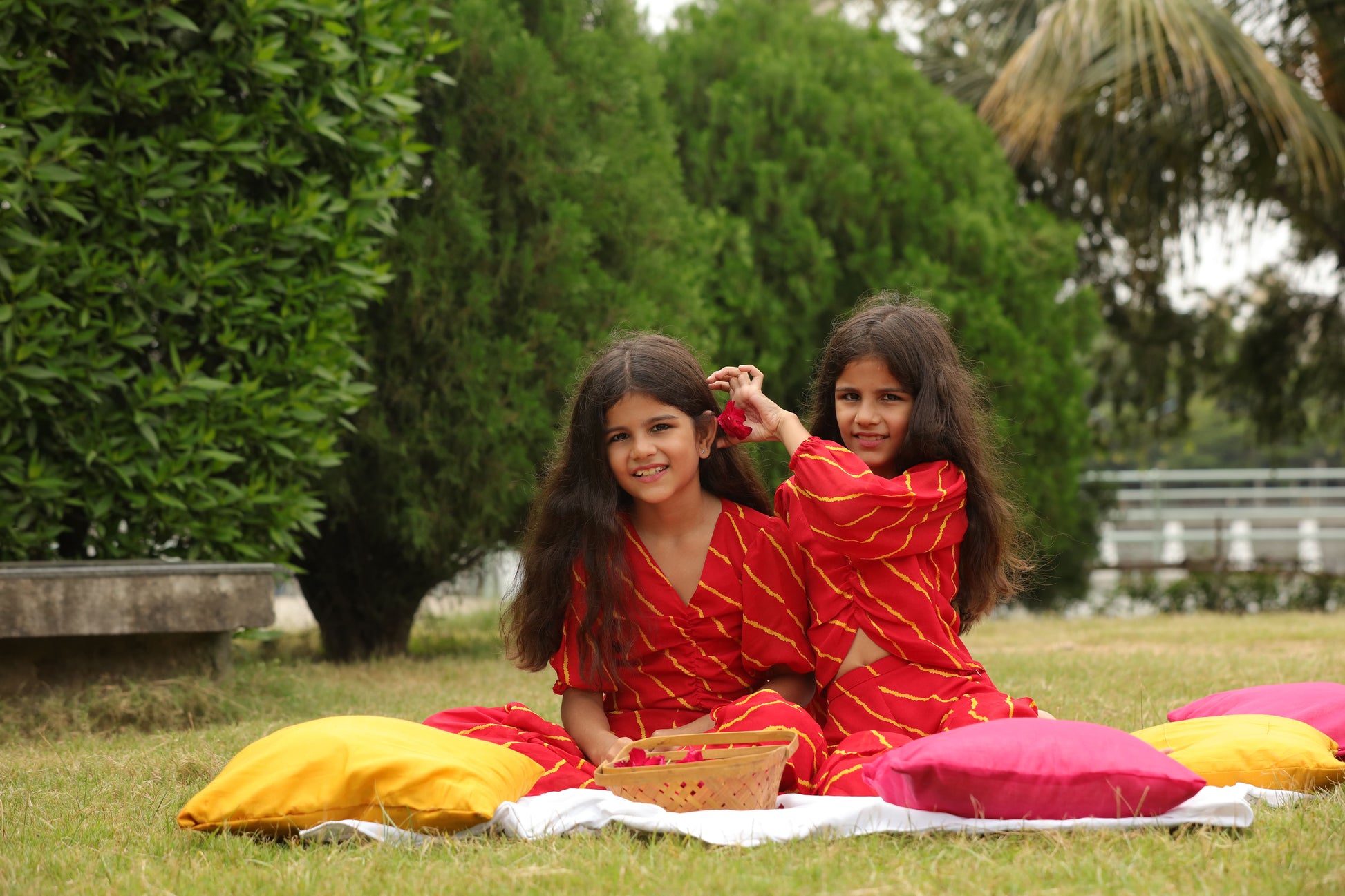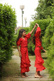 Get your little one ready for any traditional occasion or formal event with this beautiful set. Undeniably stylish and elegant, the ensemble is awash with grace. The combination of three tiered sharara and puff sleeves statement top is a perfect playful style.
