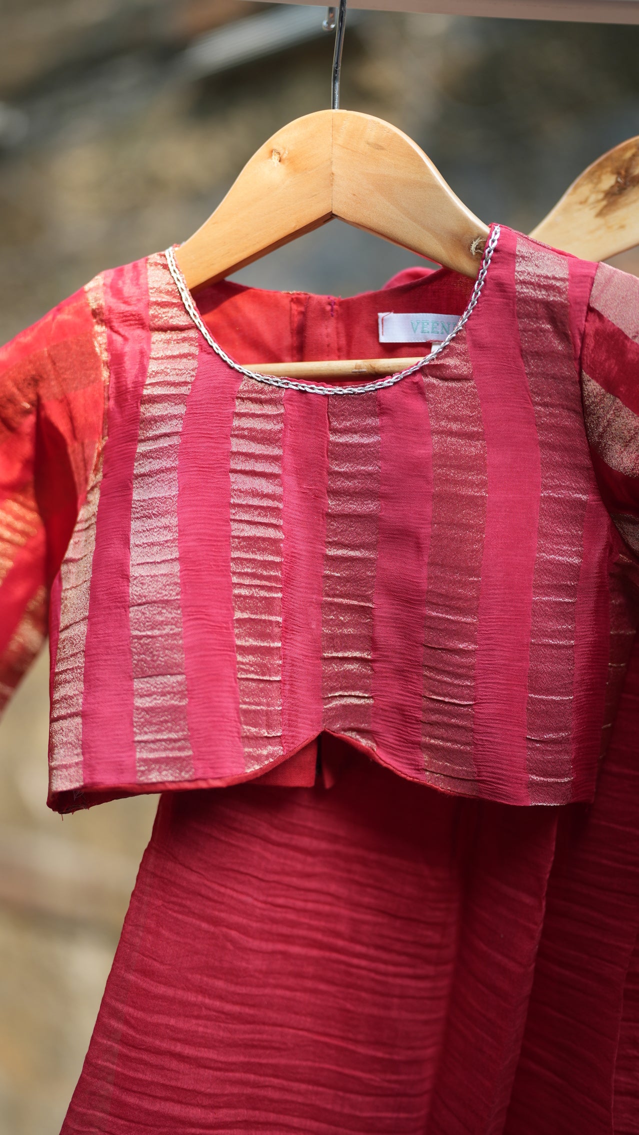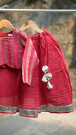 Red stripes kids lehenga set